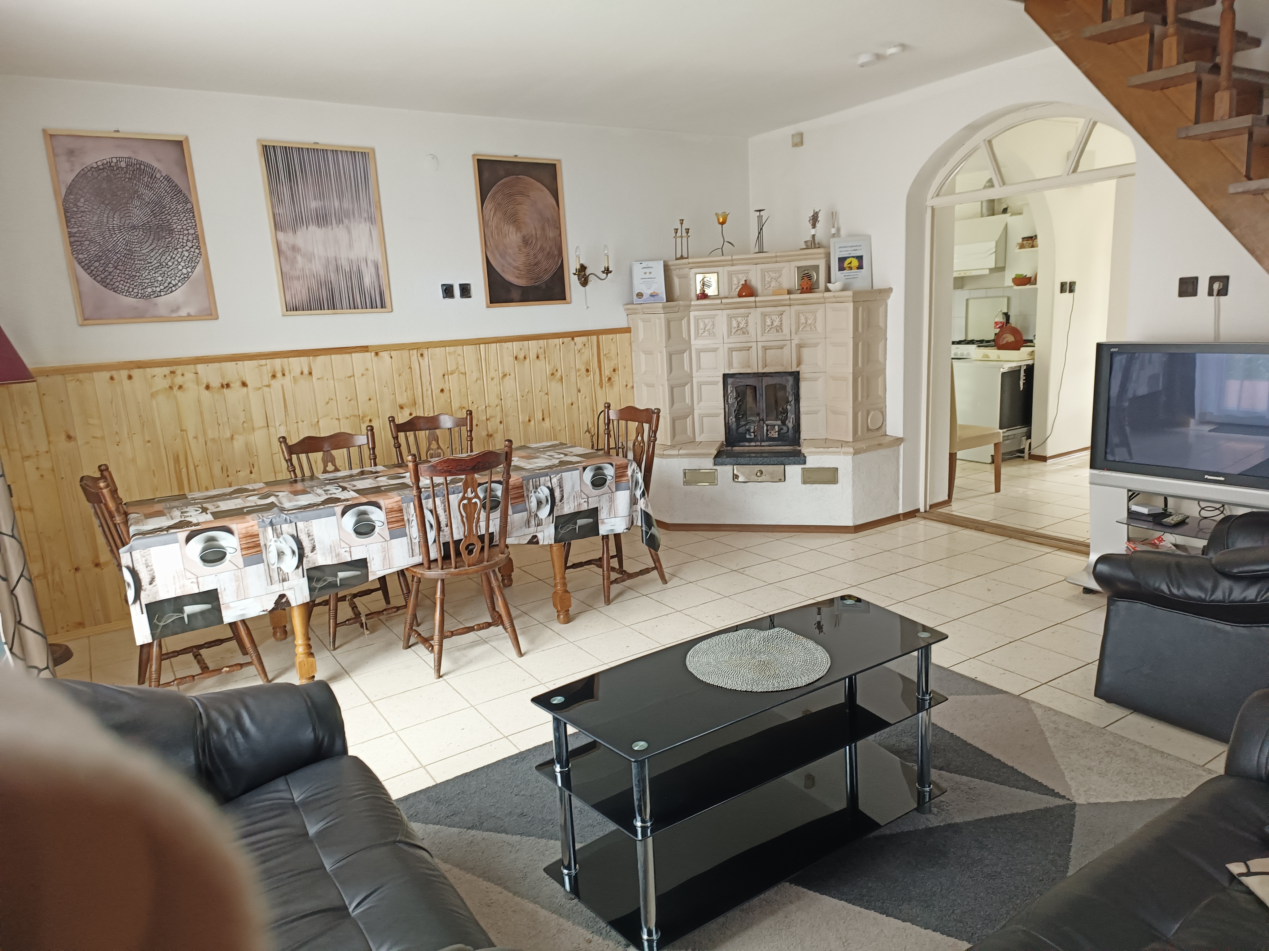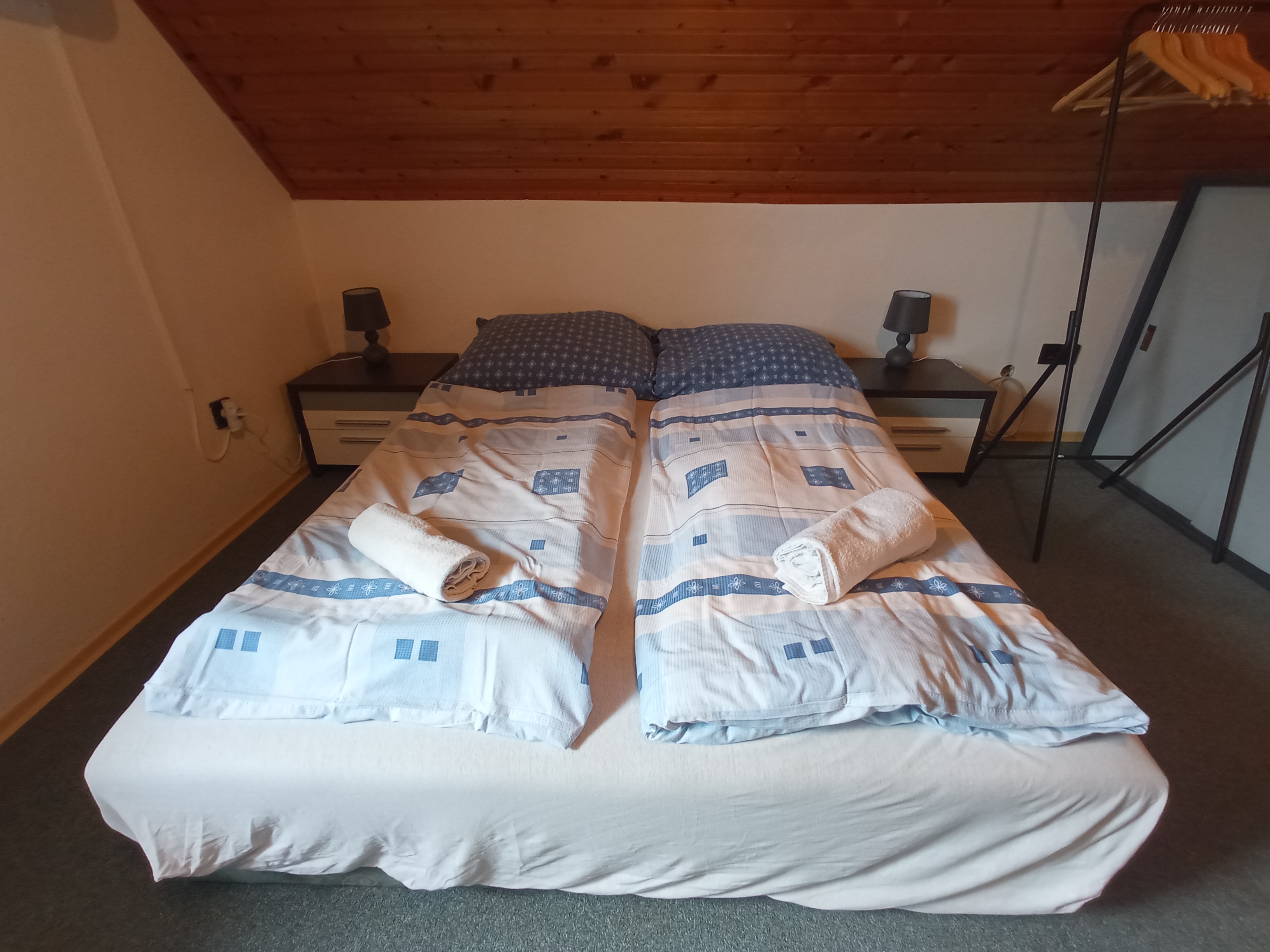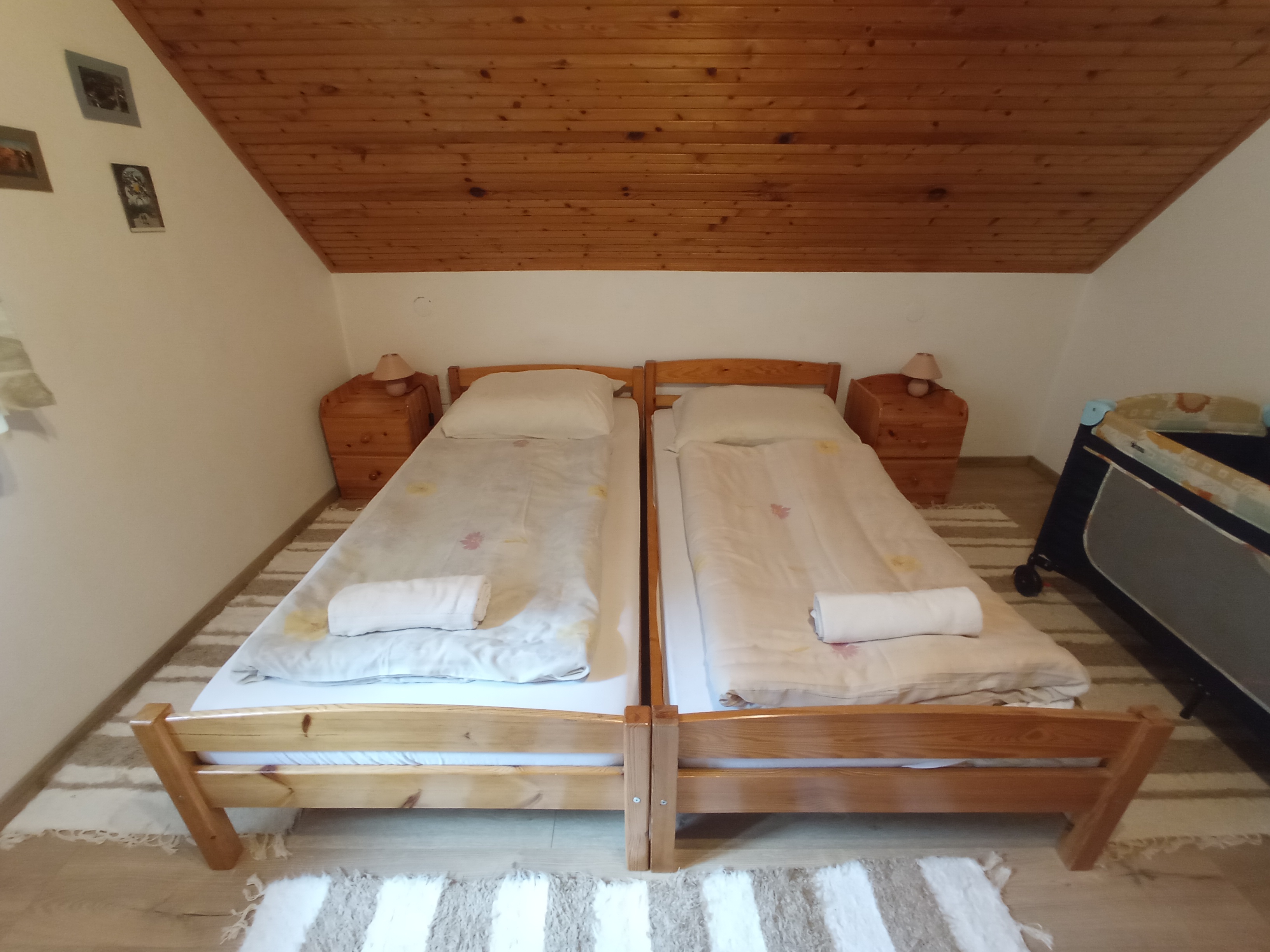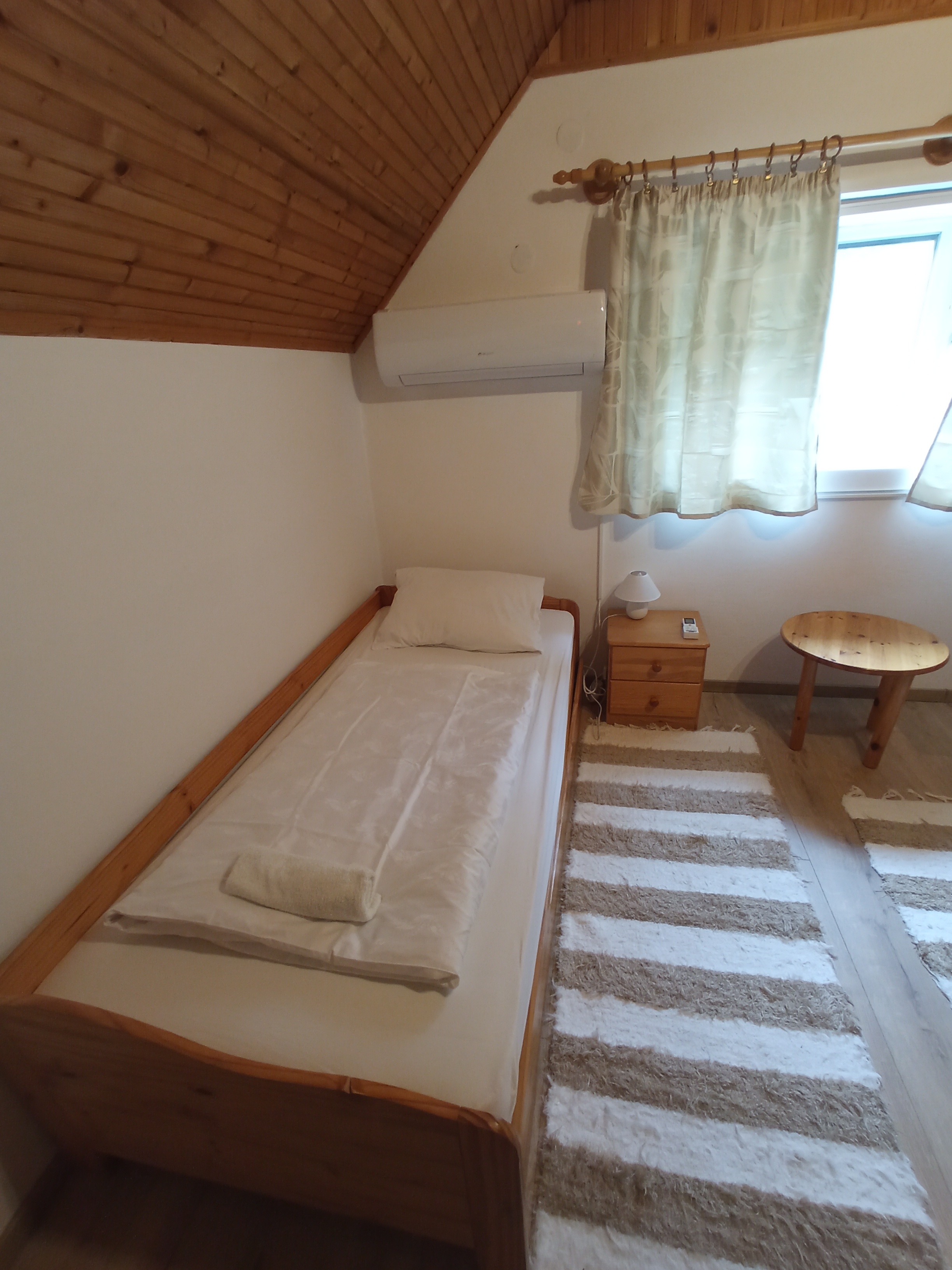 A vendégház 3 szintes dupla összkomfortos magánszállás, mely teljes egészében a vendégek részére fenntartott és 16 fő fogadására alkalmas. A lakószinten található egy hatalmas nappali-étkező, kandallóval és teljesen felszerelt konyhával, komplett fürdőszobával és egy kétfős hálószobával. A felső szinten 3 szoba került kialakításra egy 6 ágyas, és 2 db 3 ágyas szoba, igény szerint pótágyakkal valamint egy dupla fürdőszoba. Az alsó szinten található egy tágas játszóterem: ping-pong asztal, versenycsocsó. A kertben hangulatos terasz és kinti sütögetésre kiválóan alkalmas bográcsozó és grillező helyek várják a természet ölelésében kedves vendégeinket."